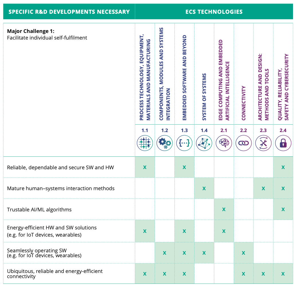 | Major Challenge 1: Smart & Efficient - Managing Energy Generation, Conversion, and Storage Systems | Topic 1.1: smart electronic control systems for energy conversion and storage | High efficiency converters, smart actuators & sensors, Plug- and Play Functionality, Real Time Digital Twin, Integrated Security System, Status & Health Monitoring, Integrated reference communication interface, self-powering systems for off-grid operation | Further development of intelligent power devices and electronic control towards higher system energy efficiency, lower system costs and integration or newly developed device technologies - 55% GHG emissions |